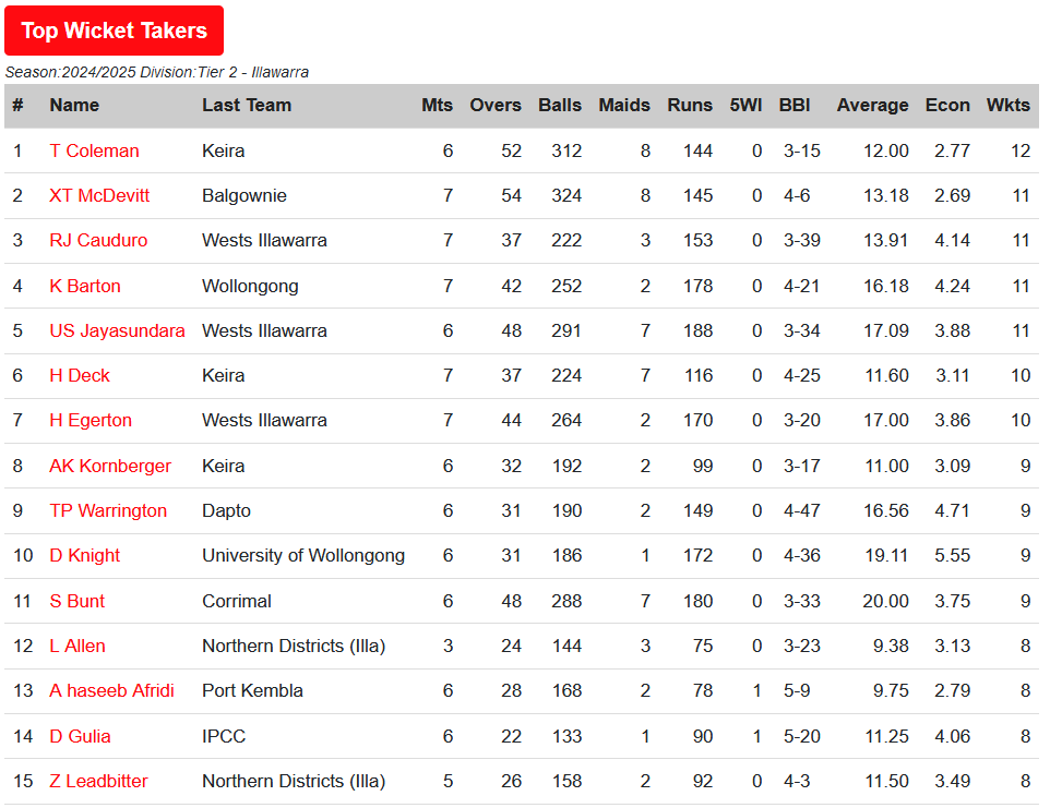 Uncategorized Leading Statistics – Illawarra 1st Grade December 12, 2024 actcricketstats Leave a comment