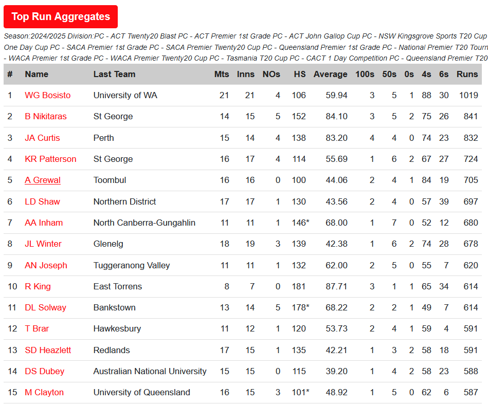 Uncategorized Australian Men’s Premier 1st Grade Statistics December 12, 2024 actcricketstats 2 Comments