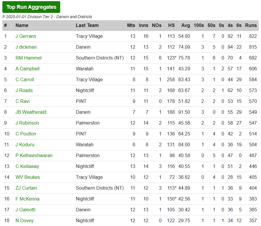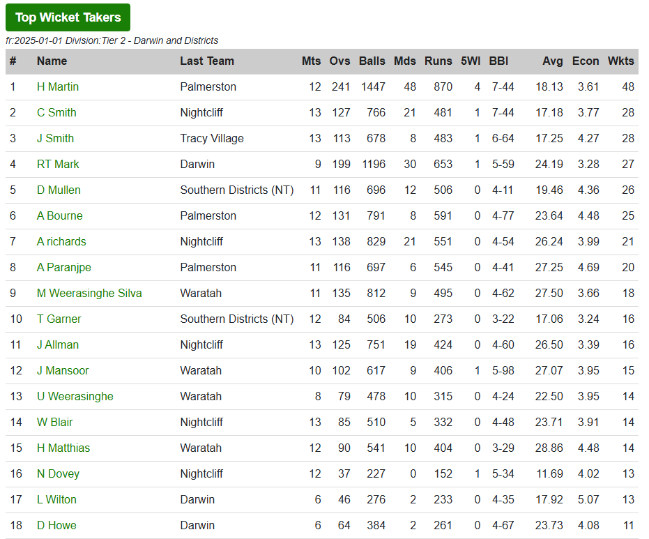 Uncategorized Leading Statistics – Darwin and Districts A Grade September 1, 2025 actcricketstats Leave a comment Share this: Click to share on X (Opens in new window) X Click to share on Facebook (Opens in new window) Facebook Like Loading... Related