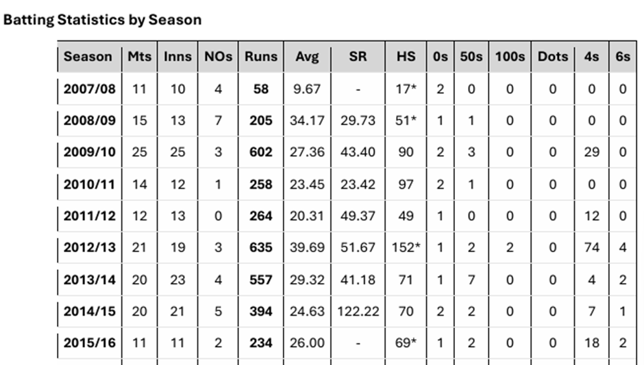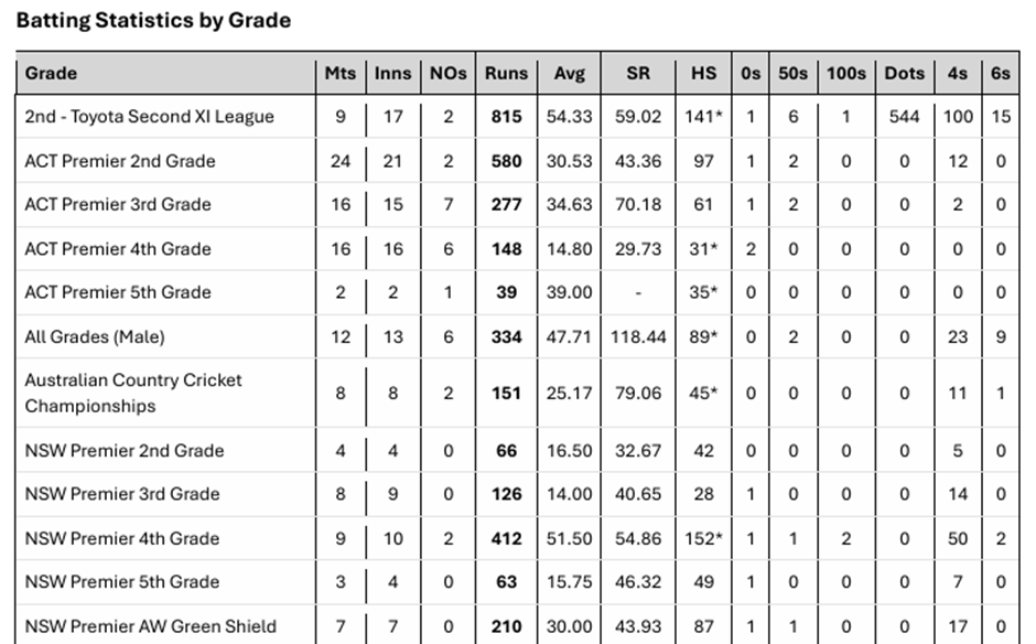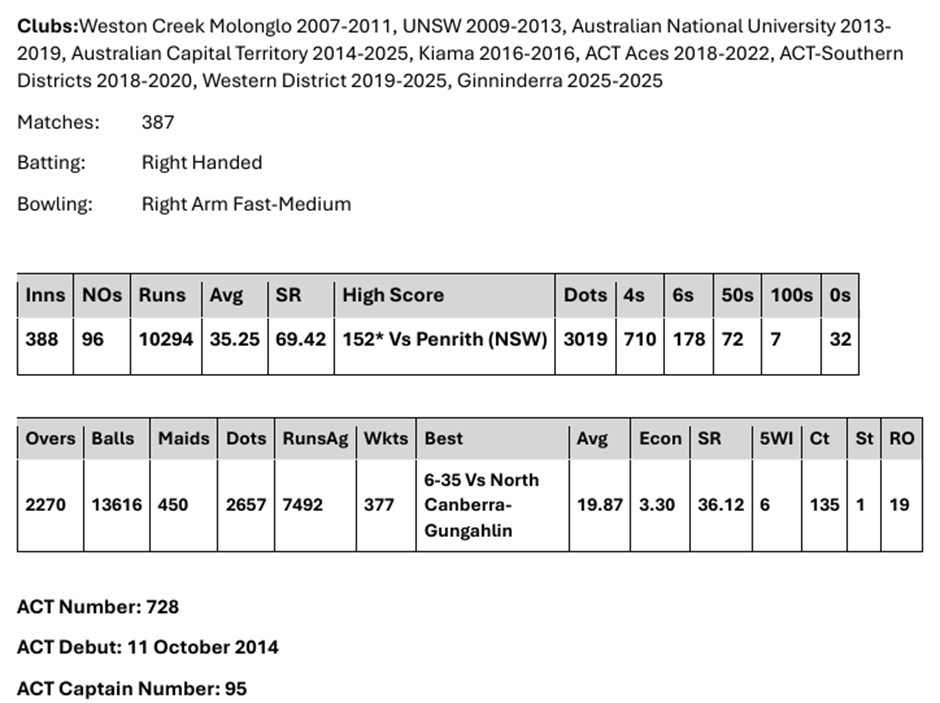 Any player that has played representative cricket can be selected, as well as any player that has competed in Australian cricket competitions over the last 15 years. This selection process is inclusive and considers various forms of the game, ensuring a broad spectrum of talent is evaluated. I do have a particular focus on Premier 1st Grade cricket across Australia, as it serves as a vital platform for showcasing emerging players and developing existing talent. Additionally, First-Class, List A, and T20 Cricket are also taken into account, as these formats have provided numerous opportunities for players to demonstrate their skills and excel over time.